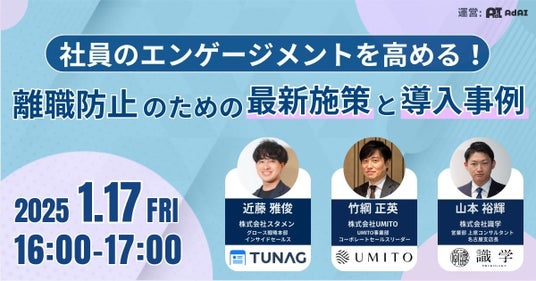 従業員エンゲージメント向上を実現するTUNAG、株式会社UMITOおよび株式会社識学と、共催セミナー「社員のエンゲージメントを高める! 離職防止のための最新施策と導入事例」を1/17(金)に開催