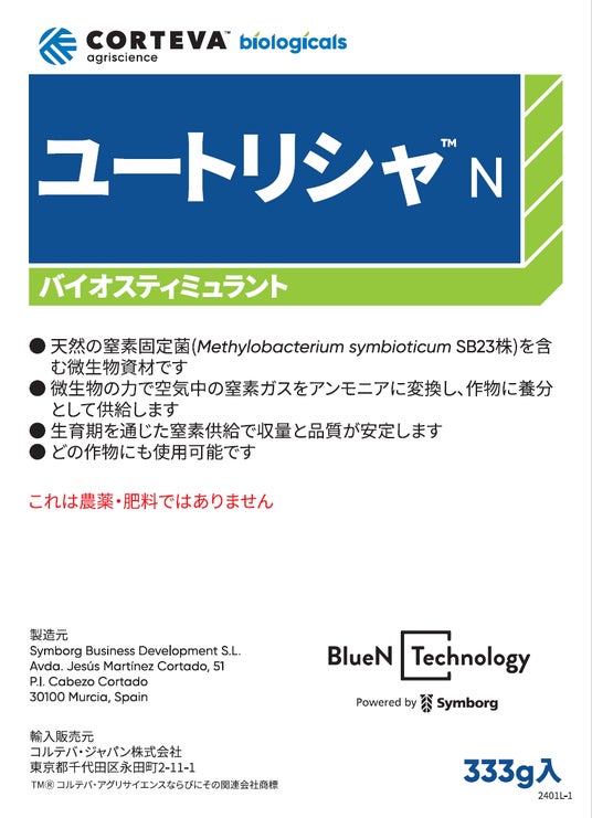 このたび、全国規模で肥料事業を展開し、系統流通(※1)に国内屈指の販売体制をもつ片倉コープアグリ株式会社は、農薬・種苗分野のグローバルカンパニーである、コルテバ・アグリサイエンス日本株式会社およびコルテバ・ジャパン株式会社(※2)と業界の垣根を越えて協業し、窒素固定菌「ユートリシャ(TM)N」の全国展開を2025年6月より開始いたします。