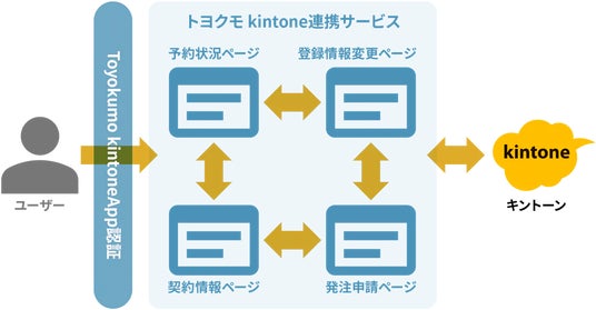 「Toyokumo kintoneApp認証」は、トヨクモの「kintone連携サービス」にアクセスするための認証の仕組みです。一度のログインで複数のページをまたいで利用できるので、相手に応じた情報共有や、双方向での情報共有のような複雑なシステムも簡単に構築できます。