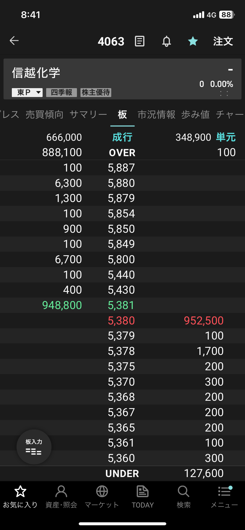 信越化学工業の個人投資家の売買予想