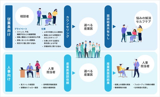 また、複数の医者がオンラインにて面談できる体制を整えており、産業医の訪問日や面談時間に制限があり、面談の実施が困難であった企業が、従業員に対して産業医面談の機会を提供することが可能です。