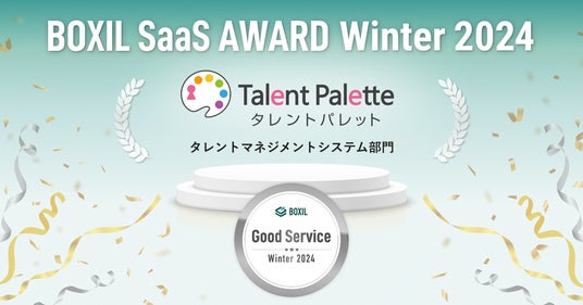 今回の「BOXIL SaaS AWARD Winter 2024」は、2023年10月1日~2024年9月30日までの1年間に「BOXIL SaaS」上へ新たに投稿された口コミ約13,000件を審査対象としています。今回、「タレントパレット」はタレントマネジメントシステム部門にて「Good Service」を受賞いたしました。