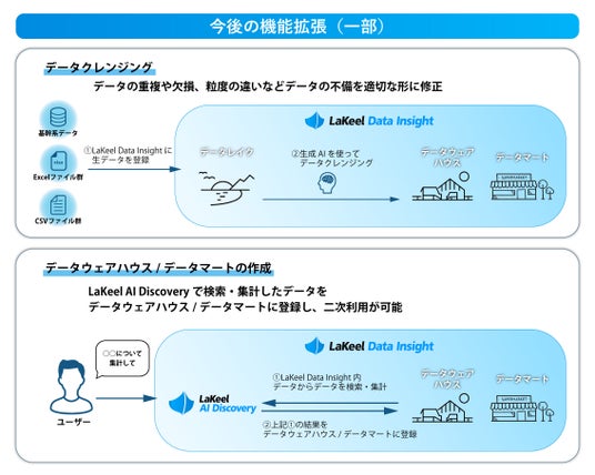 ラキールは今後もお客様がデータに基づいたビジネス判断やマネジメントを実現できるよう、データ標準化に向けたデータクレンジング、LaKeel AI Discoveryで取得したデータを再利用できるデータウェアハウス(※1)/データマート(※2)の作成など、生成AIを活用したLaKeel Data Insightの機能拡張を進めてまいります。