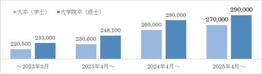 当社は、2025年4月の賃金改定において、3年連続、約6%の水準で賃上げを実施するとともに、2025年4月入社の新卒初任給(大学卒)を「月額27万円」に引き上げることとしましたので、お知らせいたします。
