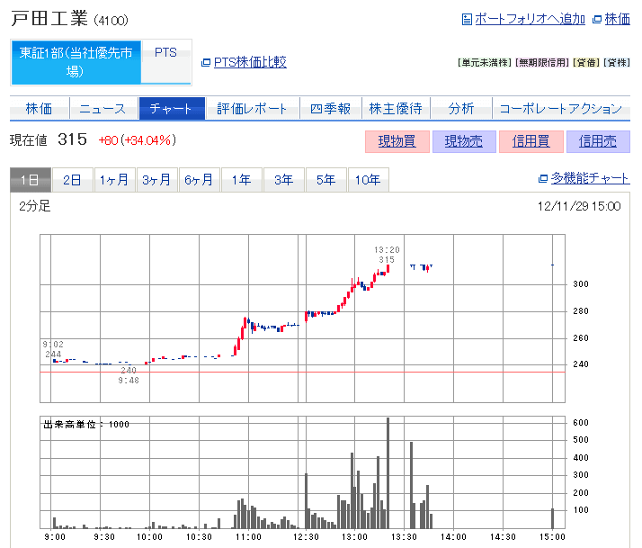 4100:戸田工業が元気です 前回高値を越えるつもりでしょうか 来週が楽しみです 電気自動車関連ですよー リチウム充電電池の材料を作ってる会社です 業績急回復らしいです さて??? 自己責任でお願いします。