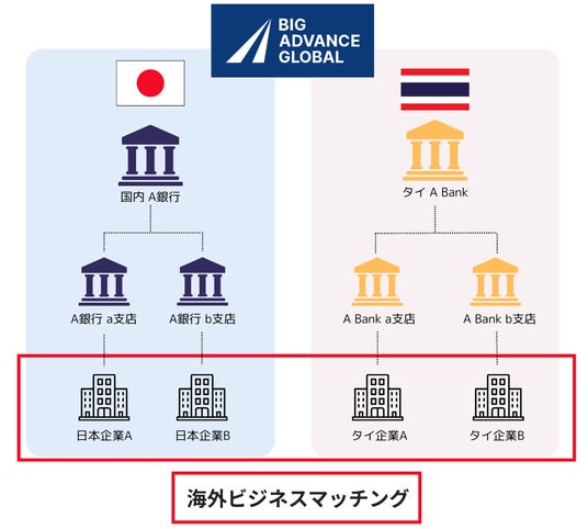 海外ビジネスマッチングプラットフォーム「BIG ADVANCE GLOBAL」は、日本企業と海外企業が国境や言語の垣根を越えて出会い、ビジネスの可能性を広げるための新たなサービスです。本プラットフォームは販路拡大や新たな仕入先の開拓をするビジネスマッチングのみならず、中堅・中小企業同士のイノベーションを創出し、両国の中堅・中小企業がグローバルマーケットで持続的に成長するための基盤を築きます。