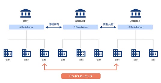 中小企業向け経営支援プラットフォームである「Big Advance」は、全国約80(※2)の金融機関が運営しており、その取引先企業が利用できるサービスです。