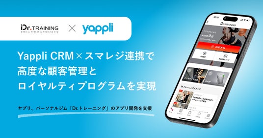 アプリプラットフォーム「Yappli(ヤプリ)」を提供する株式会社ヤプリ(本社:東京都港区、代表取締役:庵原保文、以下「ヤプリ」)は、株式会社Dr.トレーニング(本社:東京都渋谷区、代表取締役:山口元紀)が運営する、「Dr.トレーニング公式アプリ」を開発支援、Yappli CRMによるアプリ起点の顧客管理を実現したことをお知らせします。