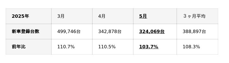 自動車販売市場の動向(2025年5月)