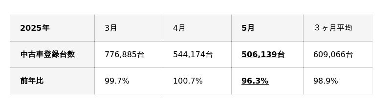 【中古車市場統計レポート(2025年05月)】より抜粋してご案内いたします。