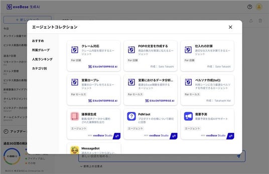 ~ AIエージェントを集約した「エージェントコレクション」も提供予定、exaBase Studioと連携しフルオーダーメイドのAIエージェントも操作可能に~