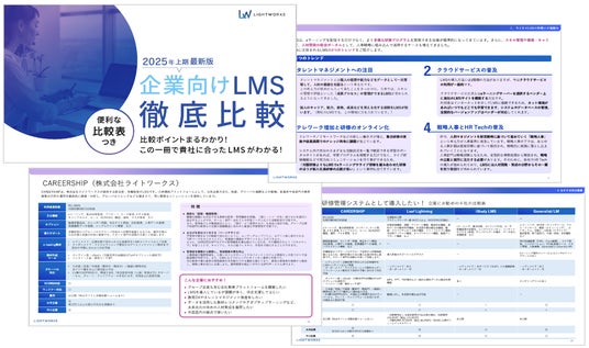 企業向けeラーニングコンテンツや学習管理システム(LMS)を開発・提供する株式会社ライトワークス(本社:東京都千代田区、代表取締役:江口夏郎、以下ライトワークス)は、企業向けLMS(学習管理システム)の最新動向と選定ポイントをまとめた「企業向けLMS徹底比較2025年上期最新版」の無償提供を開始しました。本資料では、LMSの主要機能や導入時の比較ポイントに加え、主要ベンダー17社のLMSを徹底比較。人材育成の効率化と最適なLMS選びを支援します。