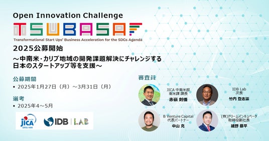 株式会社ドリームインキュベータ(東京都千代田区、代表取締役社長 三宅 孝之、以下DI)は、独立行政法人国際協力機構(以下JICA)より「TSUBASA スタートアップ連携調査」を合同会社ブラジル・ベンチャー・パートナーズと共同で受注し、JICAと米州開発銀行(Inter-American Development Bank:IDB)グループのイノベーション・ラボであるIDB Lab*による中南米・カリブ地域におけるSDGsへの貢献を目指す日本のスタートアップ企業の発掘・支援を目的とした「TSUBASA(Transformational Start Ups' Business Acceleration for the SDGs Agenda)」プログラムを、支援しております。