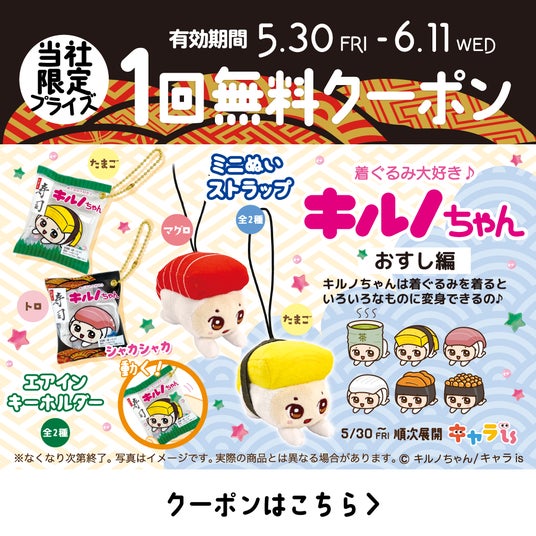 景品:キルノちゃん おすし編 ミニぬいストラップ 全2種