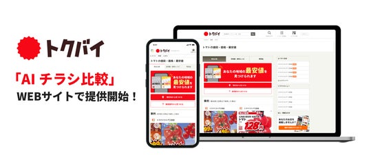 くふうカンパニーグループにおいて、チラシ・買い物情報サービス「トクバイ」を運営する株式会社ロコガイド(以下「ロコガイド」)は、2024年4月にアプリでリリースした「AI チラシ比較」機能を、トクバイWebサイトでも提供を開始しました。現在地の設定や郵便番号を入力するだけで、購入を検討している食材・商品の価格を、「近隣の店舗」「よく行く店舗」から簡単に比較することができます。