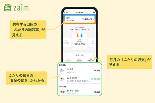 関連プレスリリース:「家計円満」のカギは家計状況の共有だった!家計簿アプリ「Zaim」 にふたりで管理する新機能「ペア家計簿」登場
