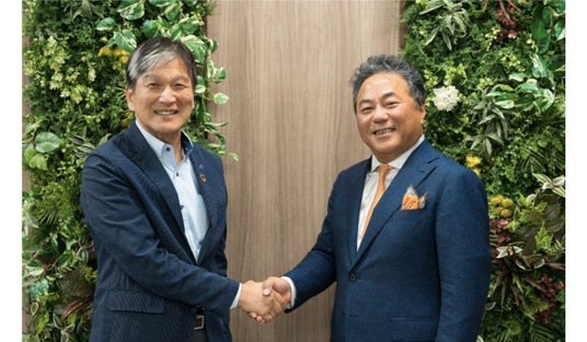 <左:JVCケンウッド 代表取締役 社長執行役員 CEO 江口 祥一郎 右:サイエンスアーツ 代表取締役社長 平岡 秀一>