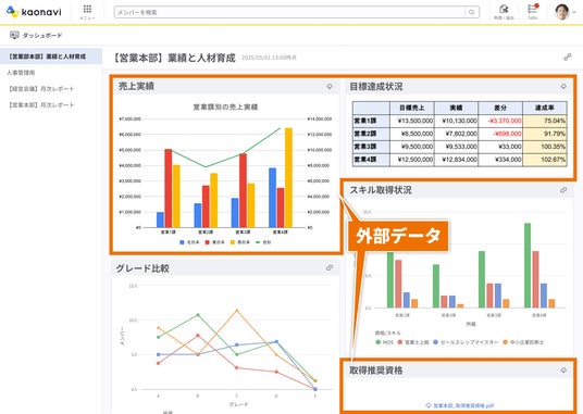 株式会社カオナビ(本社:東京都渋谷区、代表取締役社長 Co-CEO:佐藤 寛之、以下:当社)が提供するタレントマネジメントシステム「カオナビ」は、グラフなどを一つの画面上に配置する「ダッシュボード」において、外部データをアップロードできる機能を、2025年5月15日(木)より提供開始します。