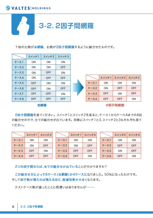 ソフトウェアのテスト・品質向上トータルサポート企業のバルテス・ホールディングス株式会社(本社:大阪市西区、東京都千代田区、代表取締役会長 兼 社長:田中 真史)が提供する『テスト技法の基本の「き」』冊子シリーズにおいて、「組み合わせ技法の基本のき」の内容を見直した改訂版を公開いたしました。