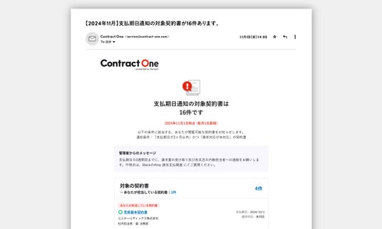 働き方を変えるDXサービスを提供するSansan株式会社は、契約データベース「Contract One(コントラクトワン)」において、新機能「カスタム通知」を実装したことを発表します。