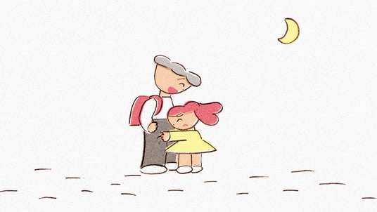 「家族と愛とメリット」第3弾では、保育園のお迎えに急ぐ父親と、子どもとの月夜の帰り道を「今宵の月のように」とともに描いています。