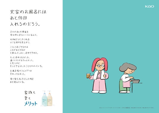 今後も「メリット」は“家族愛”をみつめ、日本中の家族に共感いただけるようなメッセージと、確かな技術力を持った「家族みんなをやさしい泡で清潔に洗い上げるシャンプー」を届けてまいります。引き続き、「家族と愛とメリット」シリーズにご注目ください。