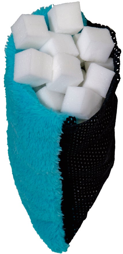 小さなサイコロ状のスポンジが内部に詰め込まれていることで形状変化しやすく、握りやすさ、泡立てやすさ、泡切れの良さなど複数の効果が各段にUPし、洗車がもっと快適に。