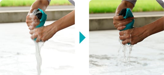 2. フリース面でやわらか洗浄、メッシュ面でしっかり洗浄