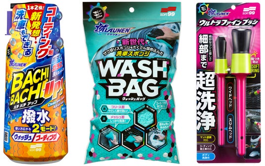 このたび、株式会社ソフト99コーポレーション(代表取締役社長:田中 秀明)は、「ALAUNEN(アラウネン)」シリーズの第二弾として、『ALAUNEN バチバチアップ ウォッシュ&コート』『ALAUNEN ウォッシュバッグ』『ALAUNEN ウルトラファインブラシ』の3アイテムを新ラインナップとして発売いたします。