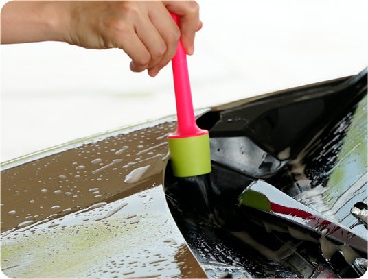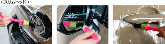 <スリムヘッド>はコシを強化した線径約0.12mmのブラシで、ドアノブやドアミラーの隙間といったスポンジでは届かない箇所の汚れをかき出します。
