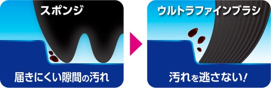適度なコシのある極細毛を採用したボディ専用の洗浄ブラシが、従来のスポンジでは届きにくい隙間にも入り込み、しっかりと汚れをかき出すことができます。