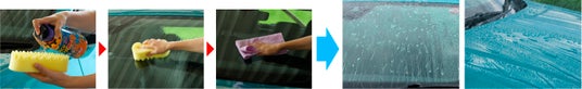 洗車後、原液をストレートで塗り込むことで強力な撥水コーティング性能を発揮。ボディもガラスも約3ヶ月※耐久と、専用品に匹敵するコーティング効果を発揮します。