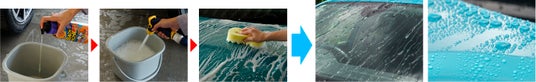 液を希釈してシャンプーのように使用すれば、汚れ落としと撥水コーティングが同時に完了。時短作業でボディもガラスも約2ヶ月※の耐久効果を発揮。