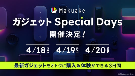 アタラシイものや体験の応援購入サービス「Makuake(マクアケ)」を運営する株式会社マクアケ(以下、「当社」)は、2025年4月18日(金)から20日(日)までの3日間、ガジェット好きのみなさんにお届けするプロモーション「Makuake ガジェットSpecial Days」を実施します。