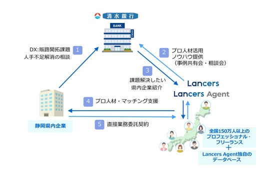 ランサーズ株式会社(本社:東京都渋谷区、代表取締役社長 CEO:秋好 陽介、東証グロース:4484、以下「ランサーズ」)は、株式会社清水銀行(本店:静岡県静岡市、代表取締役頭取:岩山 靖宏、以下「清水銀行」)と業務提携を開始いたしました。本提携を通じて、ランサーズは自社サービスで培った外部人材活用ノウハウを清水銀行に提供し、地域企業に向けて人材マッチング支援を行います。ランサーズと金融機関との提携は、今回の提携で51行目(※)となります。本提携により、地域企業の人材ソリューションの高度化、人材採用戦略や人的リソース不足といった経営課題の解決を図り、地域の発展と経済の活性化に貢献してまいります。