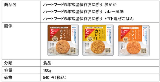 ロート製薬株式会社(本社:大阪市、社長:杉本雅史)は、循環備蓄食品「ハートフード5年常温保存おにぎり 3種(おかか、カレー風味、トマト混ぜごはん)」を、2025年1月21日(火)よりロート通販にて予約注文受付開始、2025年4月より行政・法人向けの発売を開始いたします。