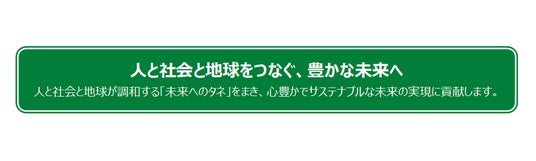 このビジョンが目指す「資源循環社会」「脱炭素社会」「環境共生社会」を実現するため、人と社会と地球が調和する「未来へのタネ」をまき、心豊かでサステナブルな未来の実現に貢献してまいります。