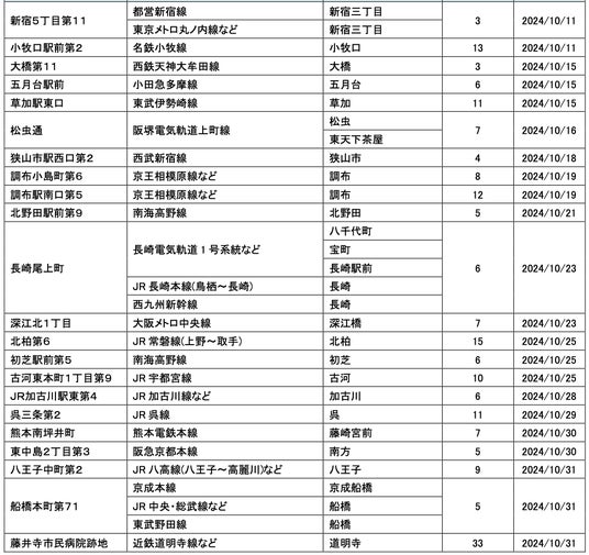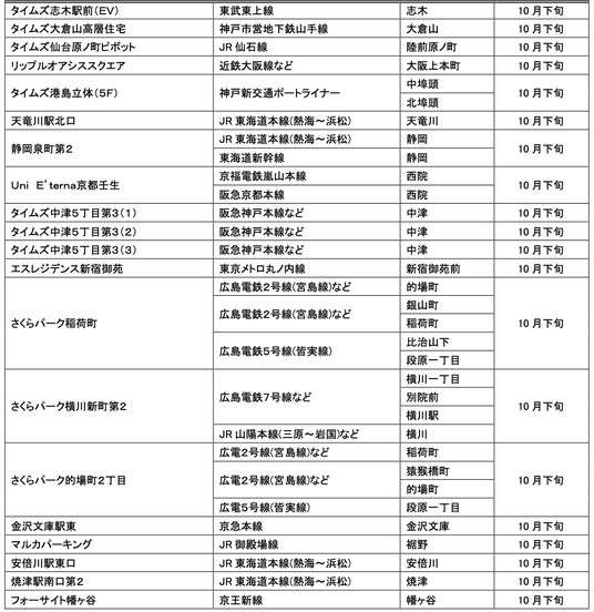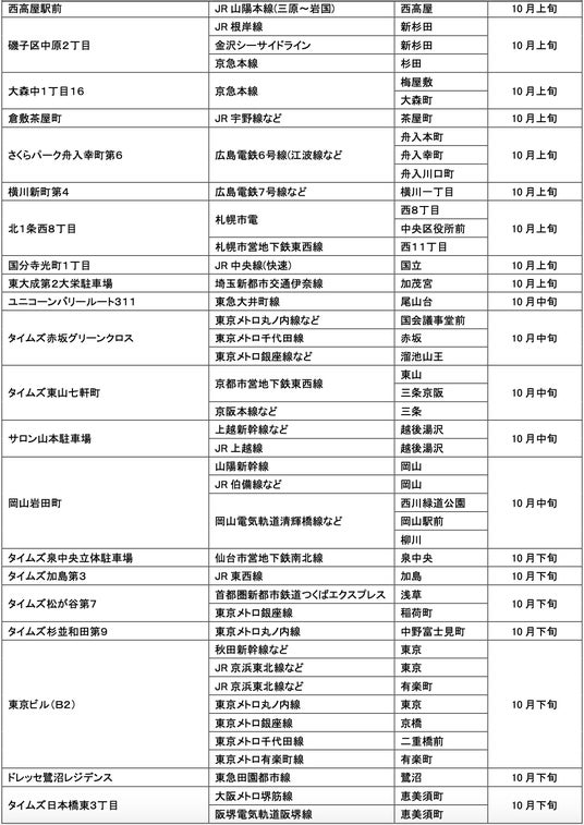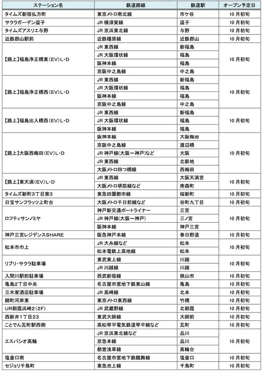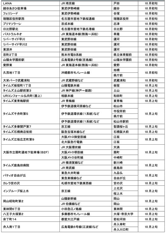 10月にオープンおよびオープン予定の「パーク&ライド」が可能な駐車場は38件、「レール&カーシェア」が可能なステーションは99件です。