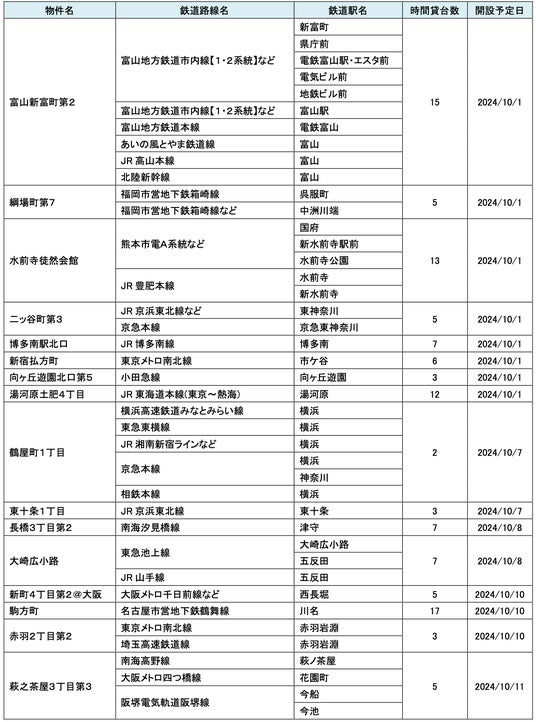 パーク24株式会社(本社:東京都品川区、社長:西川光一)は、温室効果ガスの排出量削減に繋がる移動法「パーク&ライド」および「レール&カーシェア」が可能なタイムズパーキングおよびタイムズカーステーションの2024年10月におけるオープン予定をお知らせいたします。