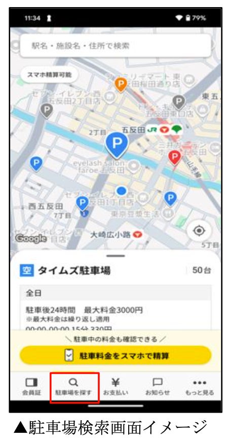 ※2 タイムズクラブアプリを通じて料金を精算できる駐車場は、Webもしくはタイムズクラブアプリ内で検索できます。