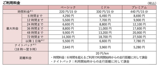 富士急カーシェアのご利用料金・ご利用方法は「タイムズカー」に準じます。