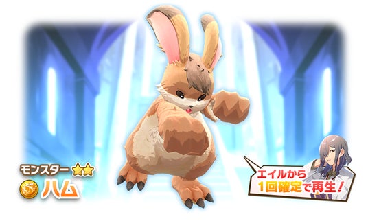 WANTED対象に指定されたモンスターを再生することでモンスターハートやブリーダーズコイン(BC)などの報酬を獲得できます。今回の対象モンスター、ハム種の「ハム」は、NPCタブにゲストとして登場する「エイル」から確定で再生することができます。WANTED再生は最大6回まで、ハムを再生して獲得した「ハムのハート」は、レアリティを上昇させる潜在能力解放を行う際に使用できます。