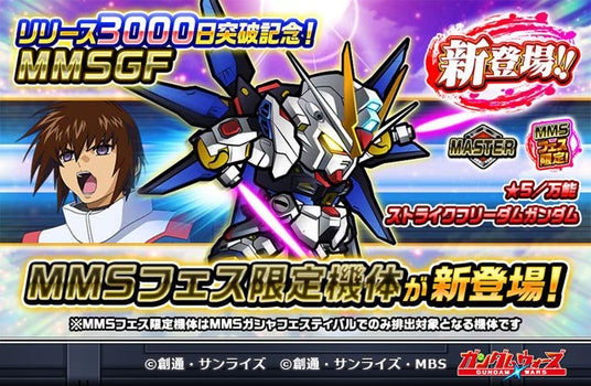 期間中、マスターMS「★5/万能 ストライクフリーダムガンダム」が登場するガシャイベント「リリース3,000日突破記念!MMSガシャフェスティバル」を開催します。