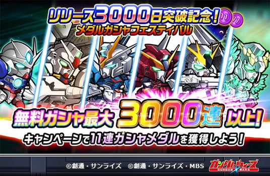 株式会社バンダイナムコエンターテインメントがLINEヤフー株式会社と展開するスマートフォン向けゲームアプリケーション「LINE: ガンダム ウォーズ」がサービス開始から3,000日を迎えました。これを記念して、さまざまなイベントやキャンペーンを開催します。