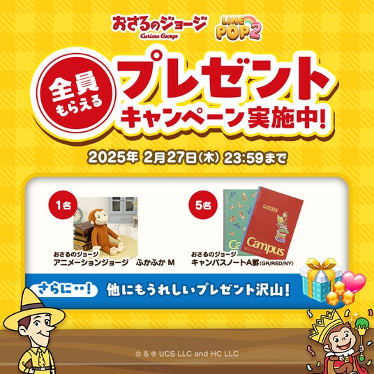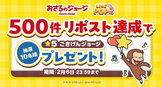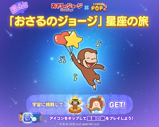 LINEヤフー株式会社は、当社が展開する6角形パズルゲーム「LINE POP2」(iPhone・Android対応/無料)にて、1月31日(金)より『おさるのジョージ』とのコラボレーションイベントを開催します。