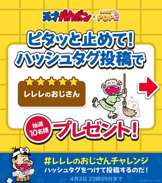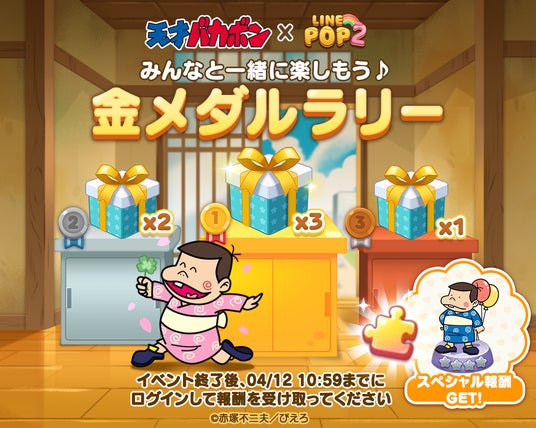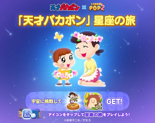 LINEヤフー株式会社は、当社が展開する6角形パズルゲーム「LINE POP2」(iPhone・Android対応/無料)にて、3月28日(金)より名作ギャグアニメ『天才バカボン』とのコラボレーションイベントを開催します。