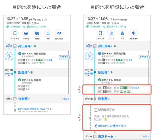 時間内に到着できるか不安な時に活用すると安心かつスムーズに移動できるほか、初めて訪れる施設への移動や、おでかけ時にオススメの機能です。