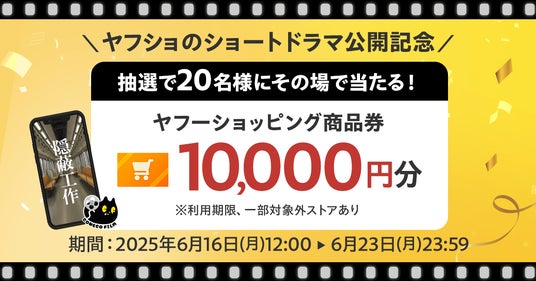 またショートドラマの公開を記念して、「Yahoo!ショッピング」の公式Xをフォロー&引用リポストすると、10,000円分のヤフーショッピング商品券が当たるキャンペーンも同時開催します。