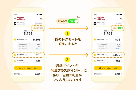 楽天グループ株式会社(以下「楽天」)は、「楽天ポイント」の利用状況などを確認できる「楽天PointClub」において、ユーザーが自らポイントを追加する手間なく、「楽天ポイント」に自動で利息が付く新機能「貯めトクモード」(以下「本機能」)の本格提供を開始しました(注1)。