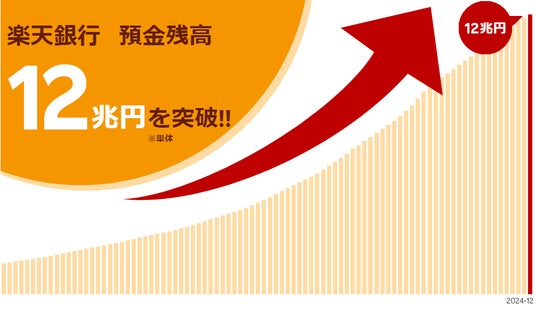 楽天銀行株式会社(以下「楽天銀行」)は、2024年12月末に預金残高(単体)が12兆円を突破したことをお知らせします。